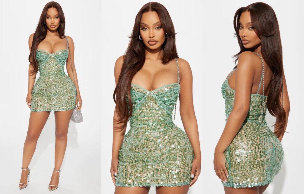 Rhinestone Bodycon | Bold sparkle, curve-hugging shape | Nightlife-ready and influencer-friendly |