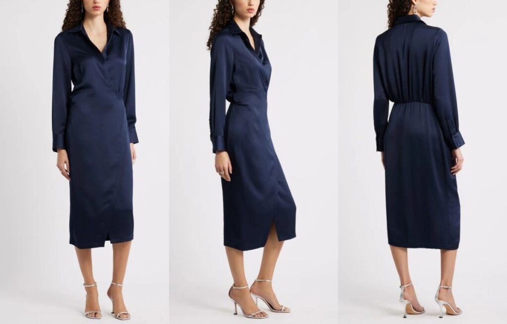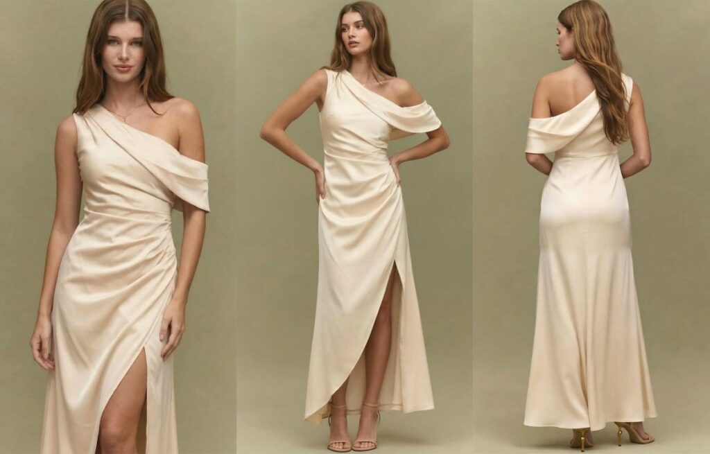 For weddings and formal events, I choose bias-cut, cowl neck, mermaid/trumpet, or fit-and-flare satin styles with lining. For parties, I choose slip, mini, high-slit, or one-shoulder styles. For work or smart casual, satin shirt dresses and satin-backed crepe sheath styles are safer and easier to wear.
