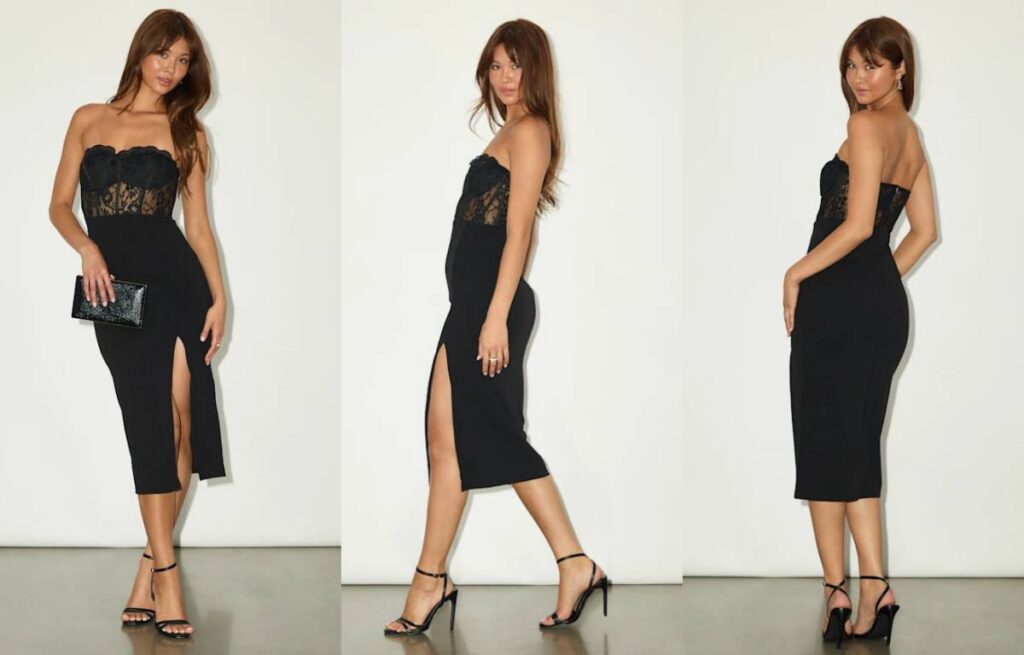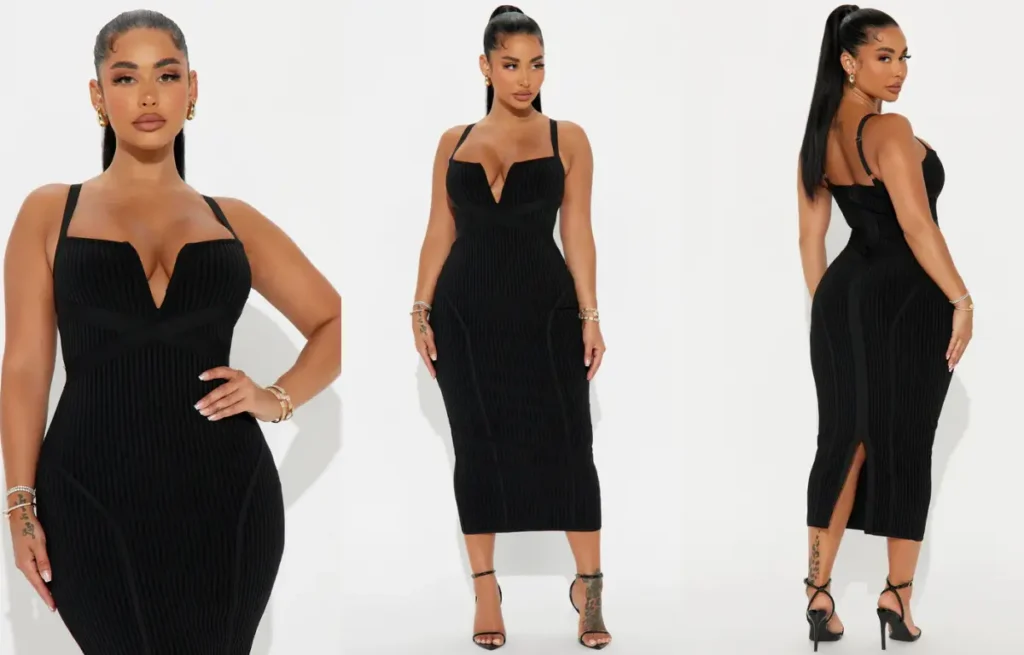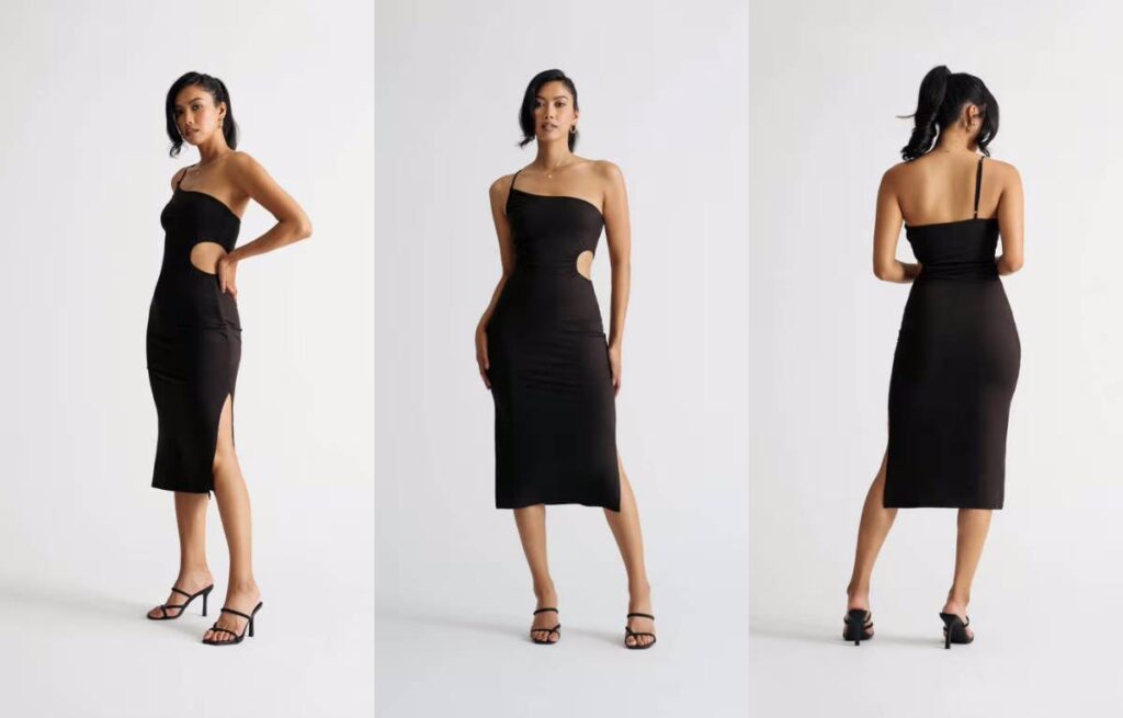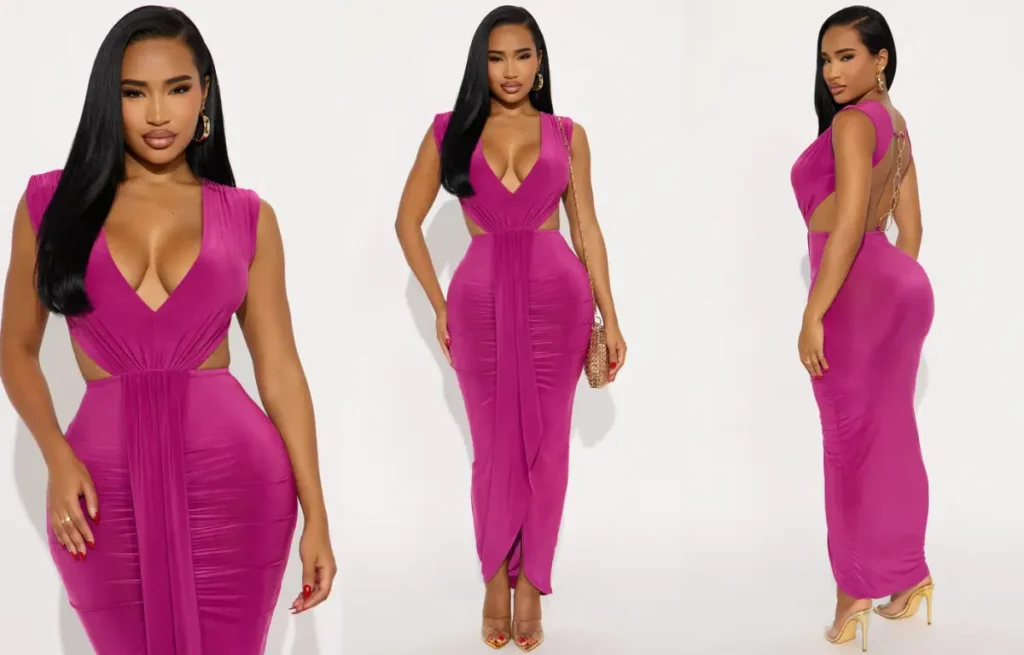 A side cut out dress includes open sections along one or both sides of the body, typically placed around the waist, lower ribs, or hips. These openings visually slim the waist, highlight the curves, and add movement and intrigue to otherwise simple shapes.