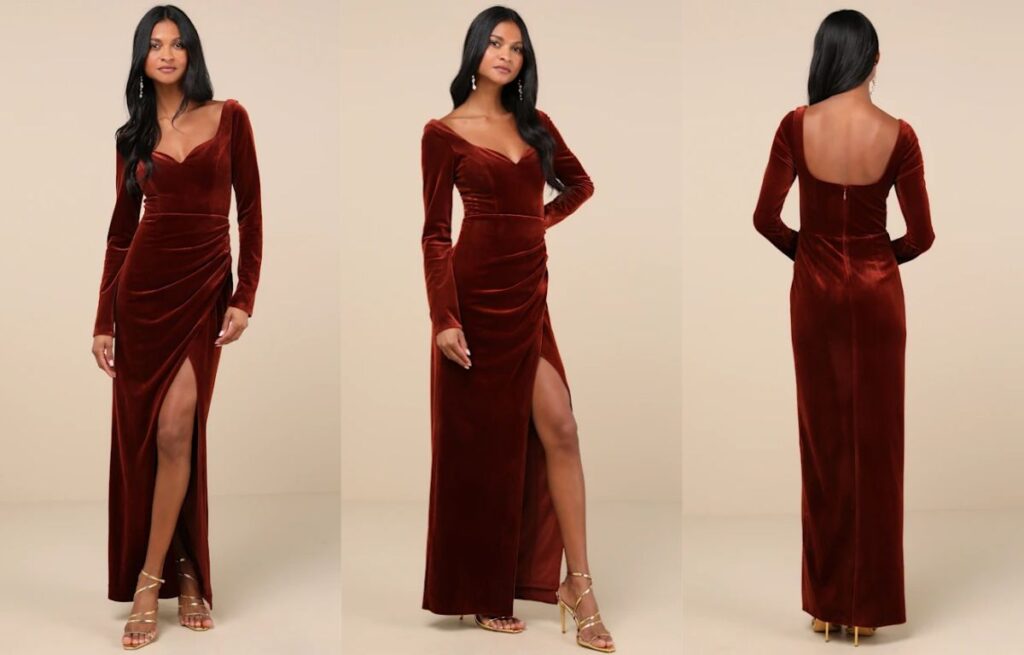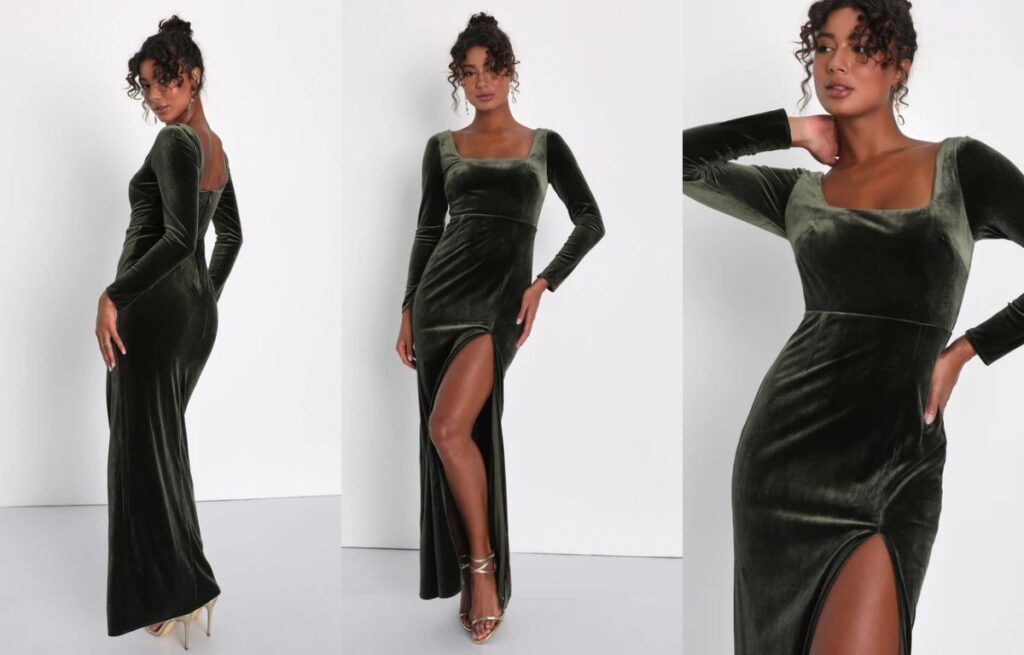 Velvet winter dresses are soft, warm, and visually luxurious, making them ideal for holiday parties, evening events, and special winter campaigns.