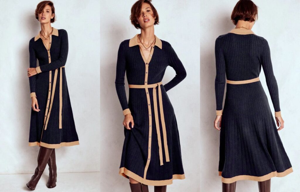 Why is the belted sweater dress a perfect mix of comfort and shape?