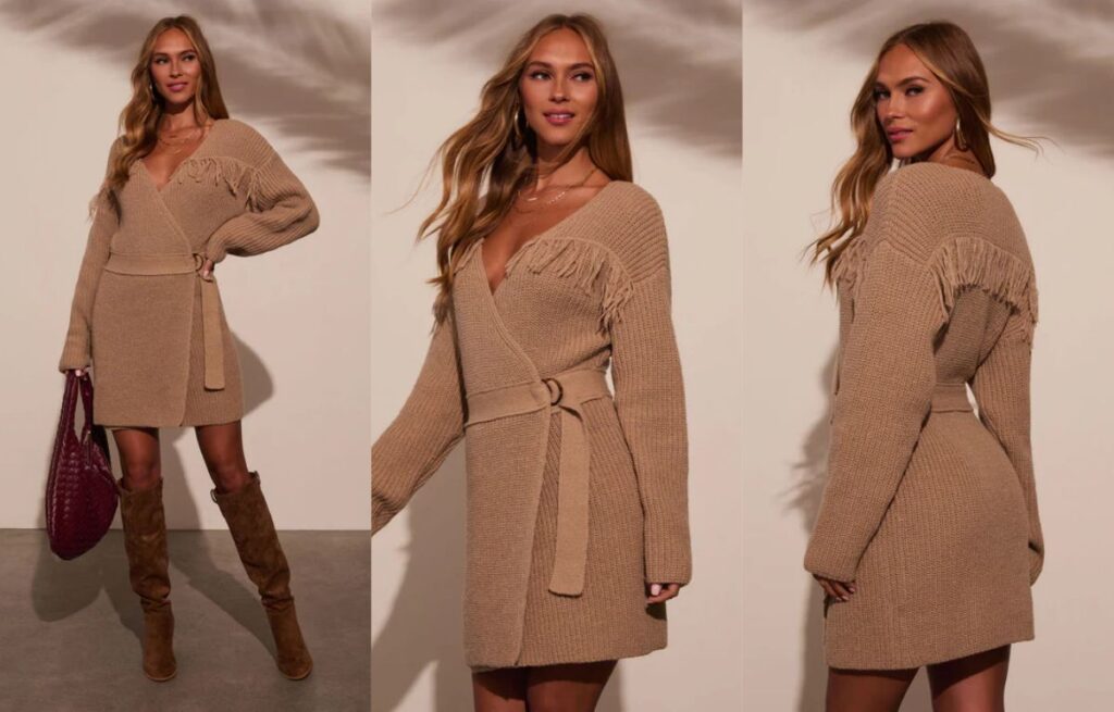 A belted sweater winter dress defines the waist, balances the silhouette, and transforms a simple knit into a complete outfit—perfect for work, weekend, or travel wear.